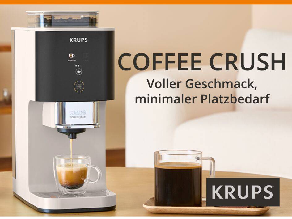 Mit der KRUPS Coffee Crush Experience holen Sie sich das volle Barista-Aroma aus frisch gemahlenen Bohnen direkt nach Hause – Von intensivem Espresso über cremigen Cappuccino bis hin zu erfrischendem Cold Brew und vielen weiteren Spezialitäten.