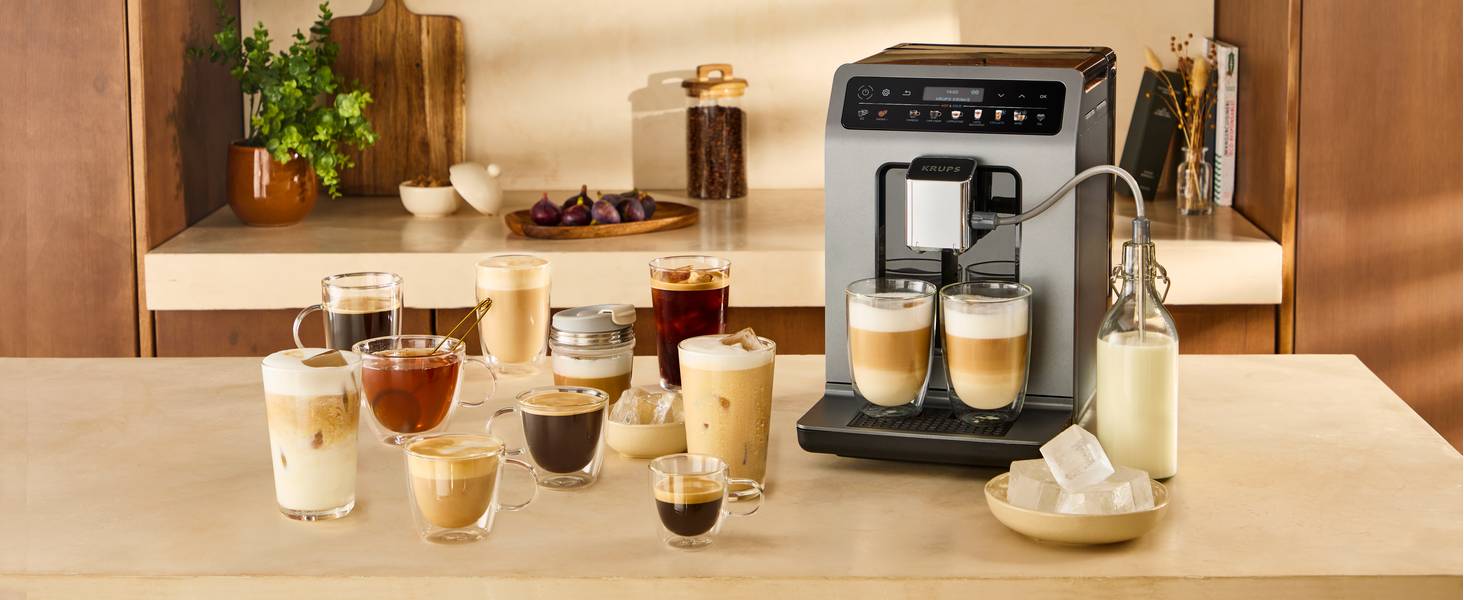 Mit der KRUPS Coffee Crush Experience holen Sie sich das volle Barista-Aroma aus frisch gemahlenen Bohnen direkt nach Hause – Von intensivem Espresso über cremigen Cappuccino bis hin zu erfrischendem Cold Brew und vielen weiteren Spezialitäten.