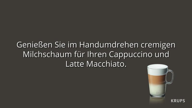 Genießen Sie im Handumdrehen cremigen Milchschaum für Ihre Cappuccino und Latte Macchiato sowie für viele andere Milchgetränke-Variationen.