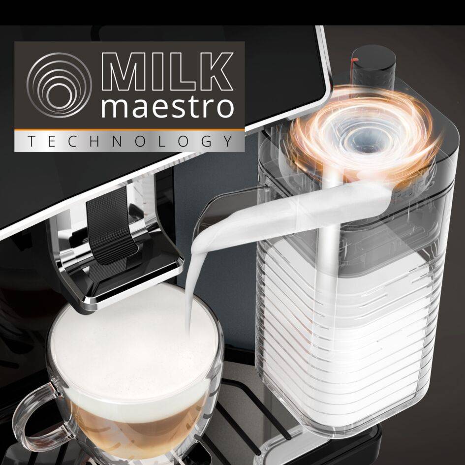 Die ultimative Lösung für perfekt aufgeschäumte Milch auf Knopfdruck. Mit der neuen automatischen Aufschäumtechnologie Milk Maestro können Sie den Milchschaum individuell einstellen, um jeden Geschmack zu treffen - von leicht bis üppig. Eine ideale Möglichkeit, Ihr Kaffeeerlebnis individuell zu verfeinern.